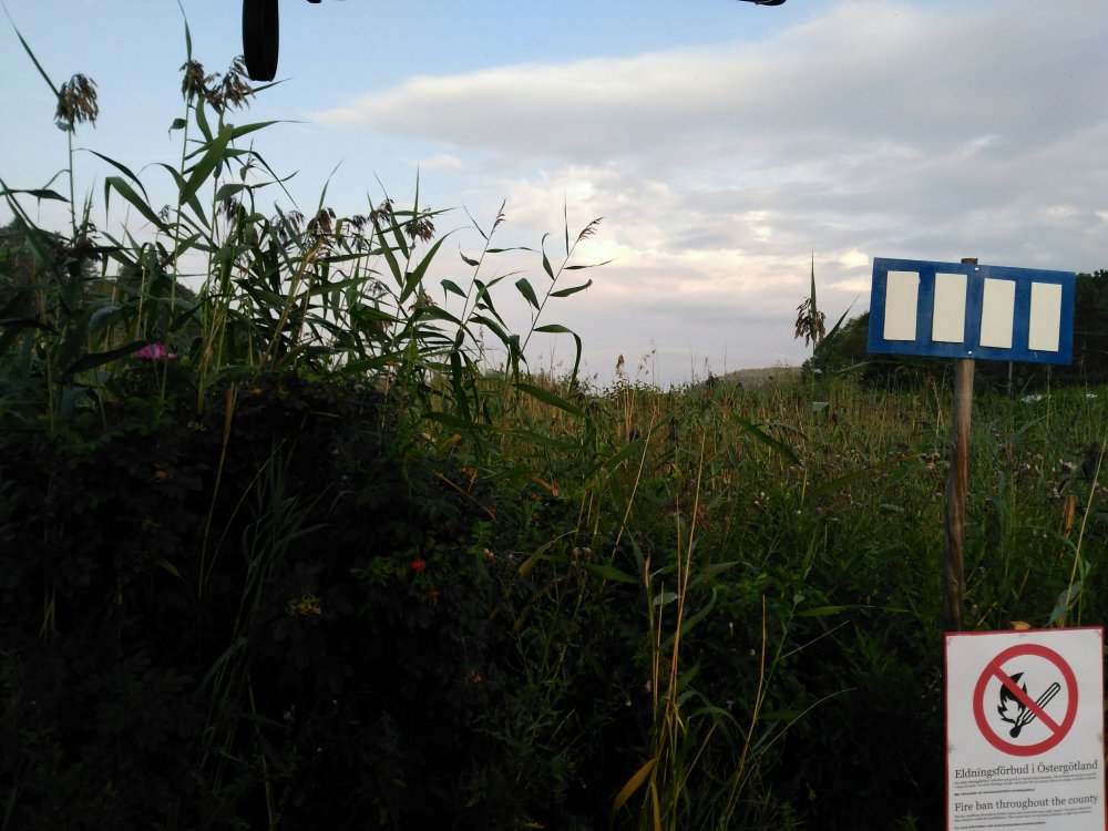 Direkt dahinter stehen die Schilder mit dem Feuerverbot im ganzen Östergötland.