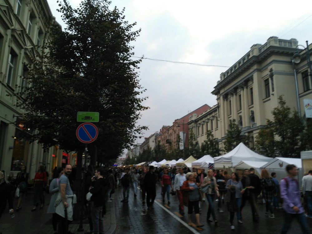 In Vilnius ist gerade nicht nur die Akkordeonwoche – an allen möglichen Orten sitzt einer und spielt ein Liedchen – sondern jetzt am Wochenende sind auch noch die Hauptstadttage. Tagsüber merke ich es nur an dem kilometerlangen Markttreiben auf dem Gedimina-Pr. = Die Downtownstreet.