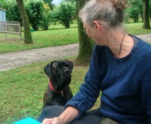 Am nächsten Morgen kommt er als Teil einer dreiköpfigen Bande wieder. Der größte unter ihnen, eine wuchtige dunkelbraune Erscheinung mit glänzendem Fell, blutunterlaufenen Augen und Sabberfäden an den Hängelefzen legt seine dicke Sabberschnauze abwechselnd auf mein Bein, meinen Arm und unseren Frühstückstisch. Er weicht mir auch nicht von der Seite, wenn ich ihn anschnauze, wegschiebe oder böse Laute von mir gebe. Auf „Assez!“ und den gehobenen Finger reagiert er endlich und lässt sich neben mir nieder. Sein Gefolge ist in den Büschen verschwunden. Endlich mal einer, der Französisch mit mir redet. Ich habe Cerberus, den dreiköpfigen Höllenhund, besiegt!