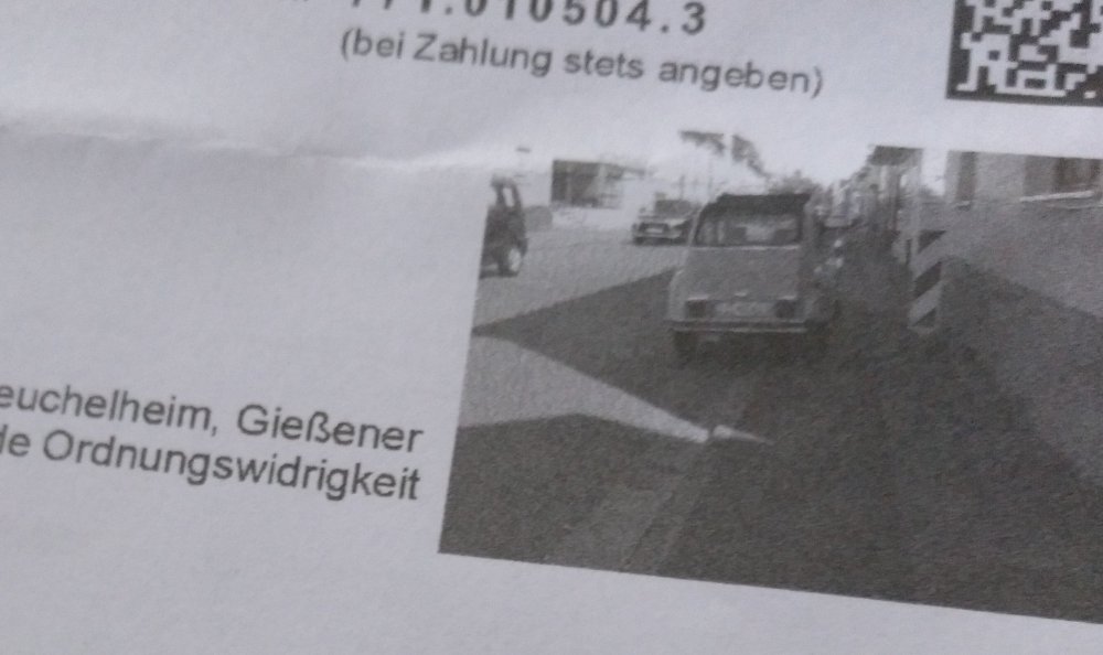 Leider will mir genau das der Mann vom Ordnungsamt nicht glauben, der mein kleines Auto ordnungswidrig halb auf dem Bürgersteig parkend entdeckt hat. Er schreibt mir einen Brief mit Beweisfoto und Aktenzeichen.