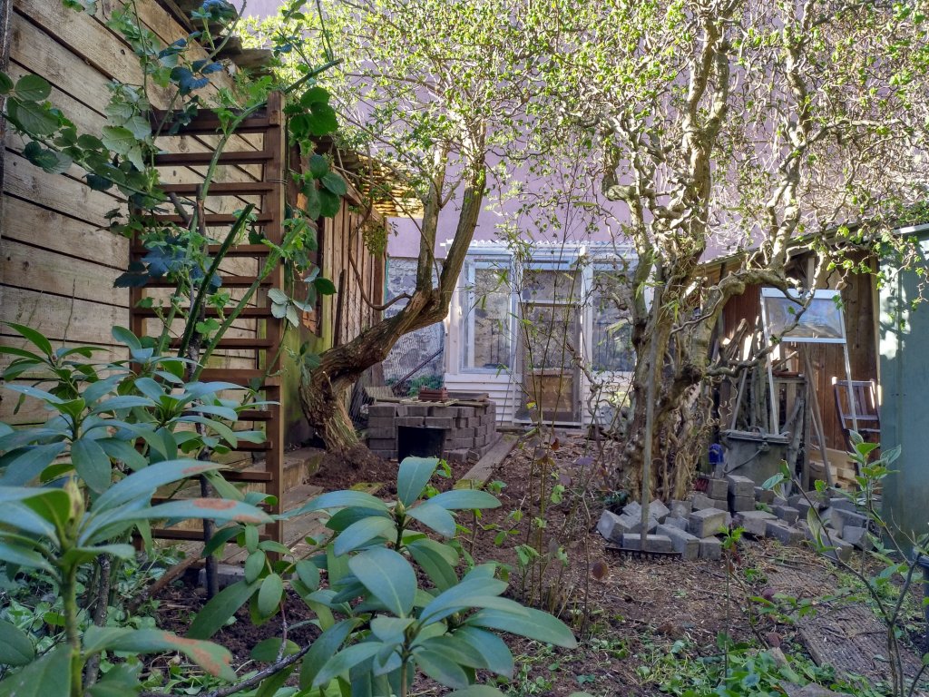 Jetzt aber, nachdem das Gewächshaus gebaut ist, muss die Metallhütte weichen. Ist eh nur olles Zeugs drin und der Hollerbaum braucht Luft.